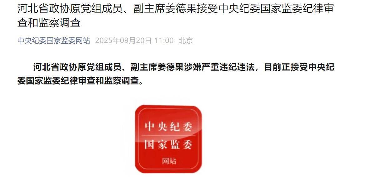 股票配资第一门户 河北省政协原党组成员、副主席姜德果接受中央纪委国家监委纪律审查和监察调查 股票配资第一门户 来源:般票期货配资 网站:明辉优配 日期:2025-09-20 20:11:08 查看:139